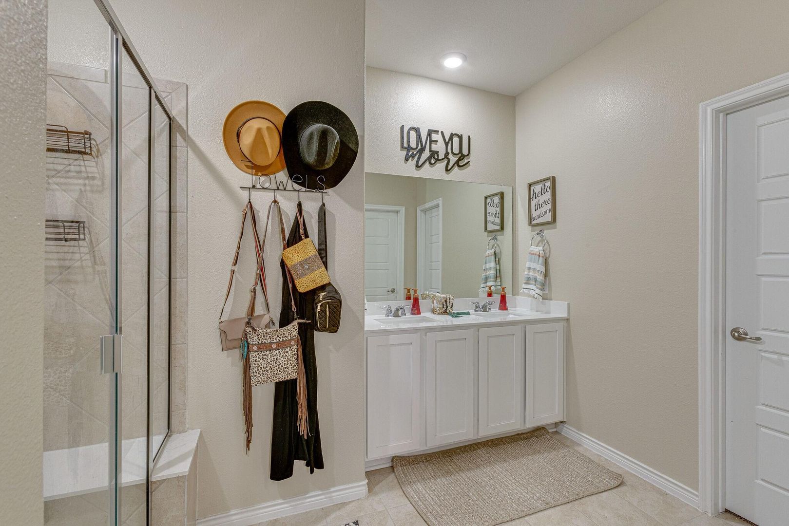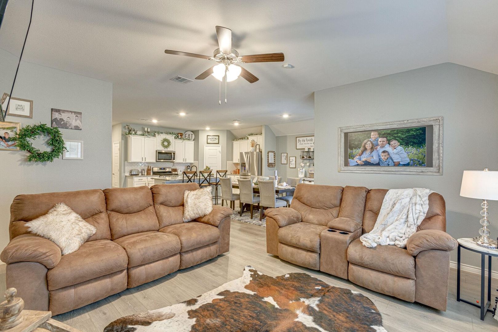 Step into this beautiful and spacious single-story home featuring four inviting bedrooms and two full baths. Designed for both comfort and style, the residence boasts a large island kitchen with sleek quartz countertops, perfect for gatherings and culinary creativity. The living room centers around a cozy fireplace, creating a warm and welcoming atmosphere, while the covered patio extends your living space outdoors for relaxation or entertaining. A full sprinkler system ensures the lush landscaping stays vibrant year-round. The primary bedroom retreat, thoughtfully tucked away at the back of the home, offers privacy and tranquility with its generous layout, double-sink ensuite, and an expansive walk-in closet. Beyond the home, the community enhances your lifestyle with resort-style amenities, including a sparkling pool and two serene ponds, making every day feel like a getaway.