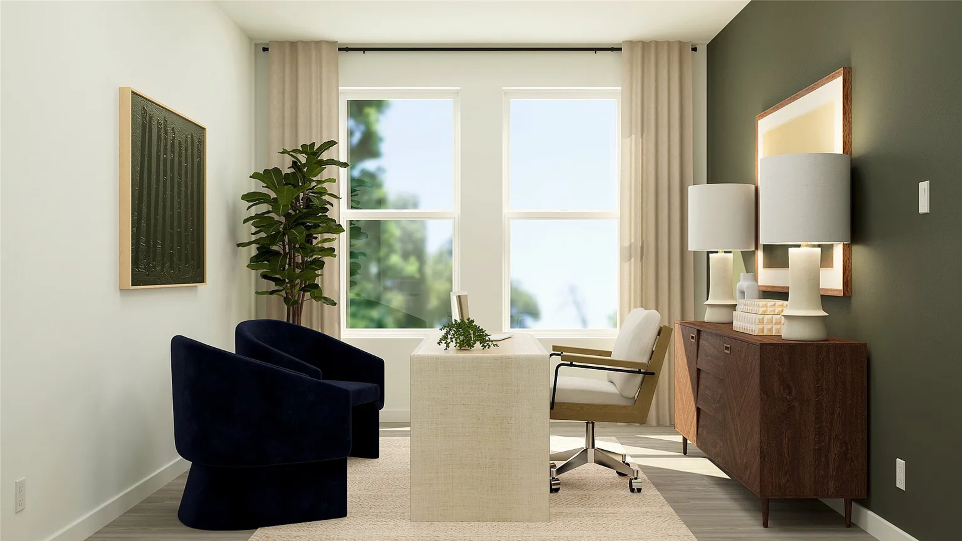 LENNAR - Highpointe Ranch - This single-level home showcases a spacious open floorplan shared between the kitchen,dining area and family room for easy entertaining during gatherings. An owner’s suite enjoys a private location in arear corner of the home, complemented by an en-suite bathroom and walk-in closet. There are two secondary bedrooms along the side of the home, which are comfortable spaces for household members and overnight guests.