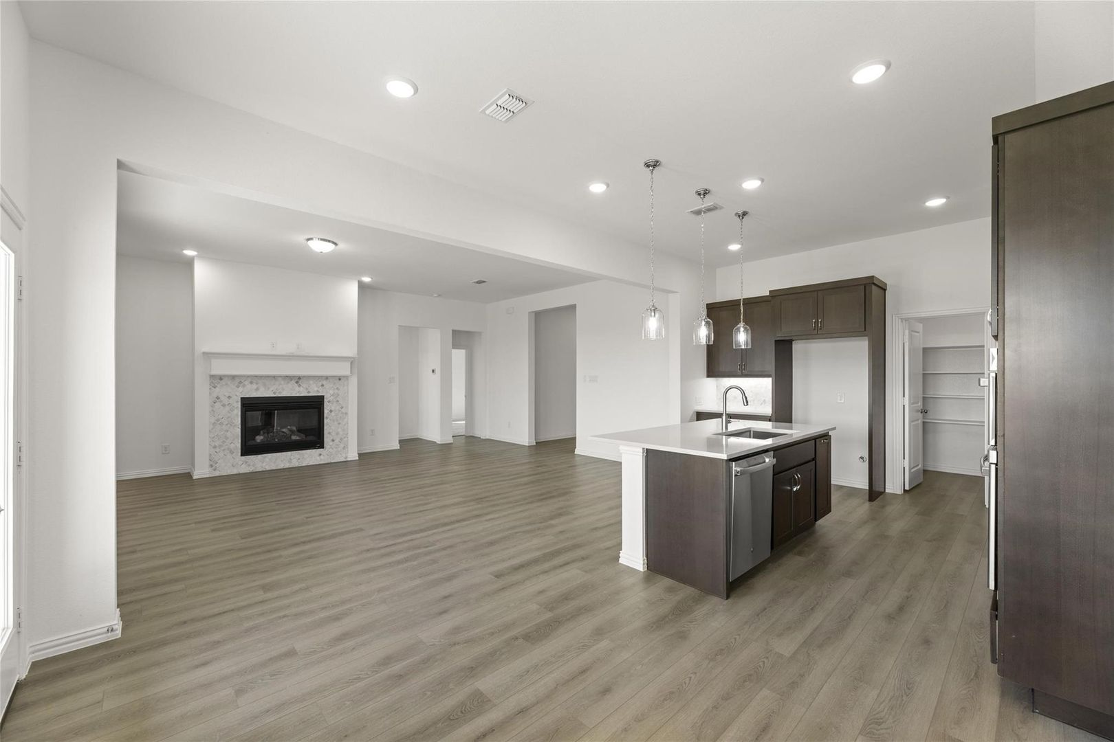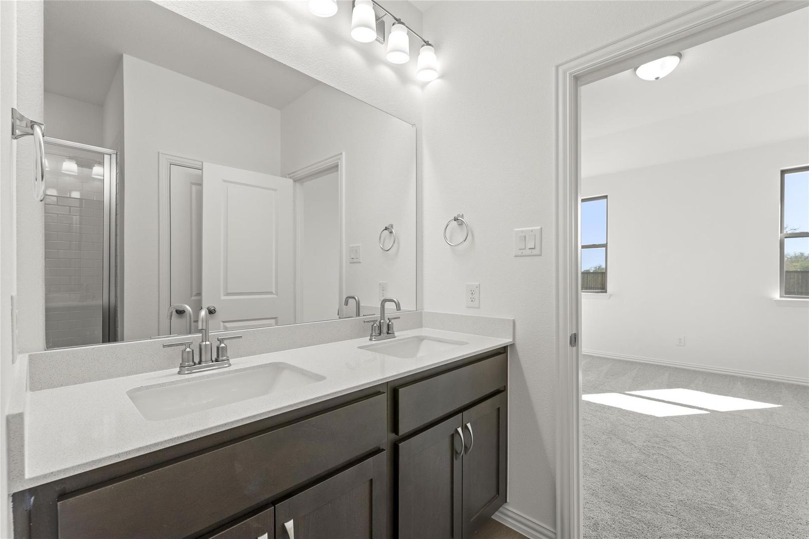 A stunning new Ashton Woods single‑story home in Melissa’s Meadow Run community featuring Quartz countertops, shaker cabinets, luxury vinyl plank flooring, four bedrooms.