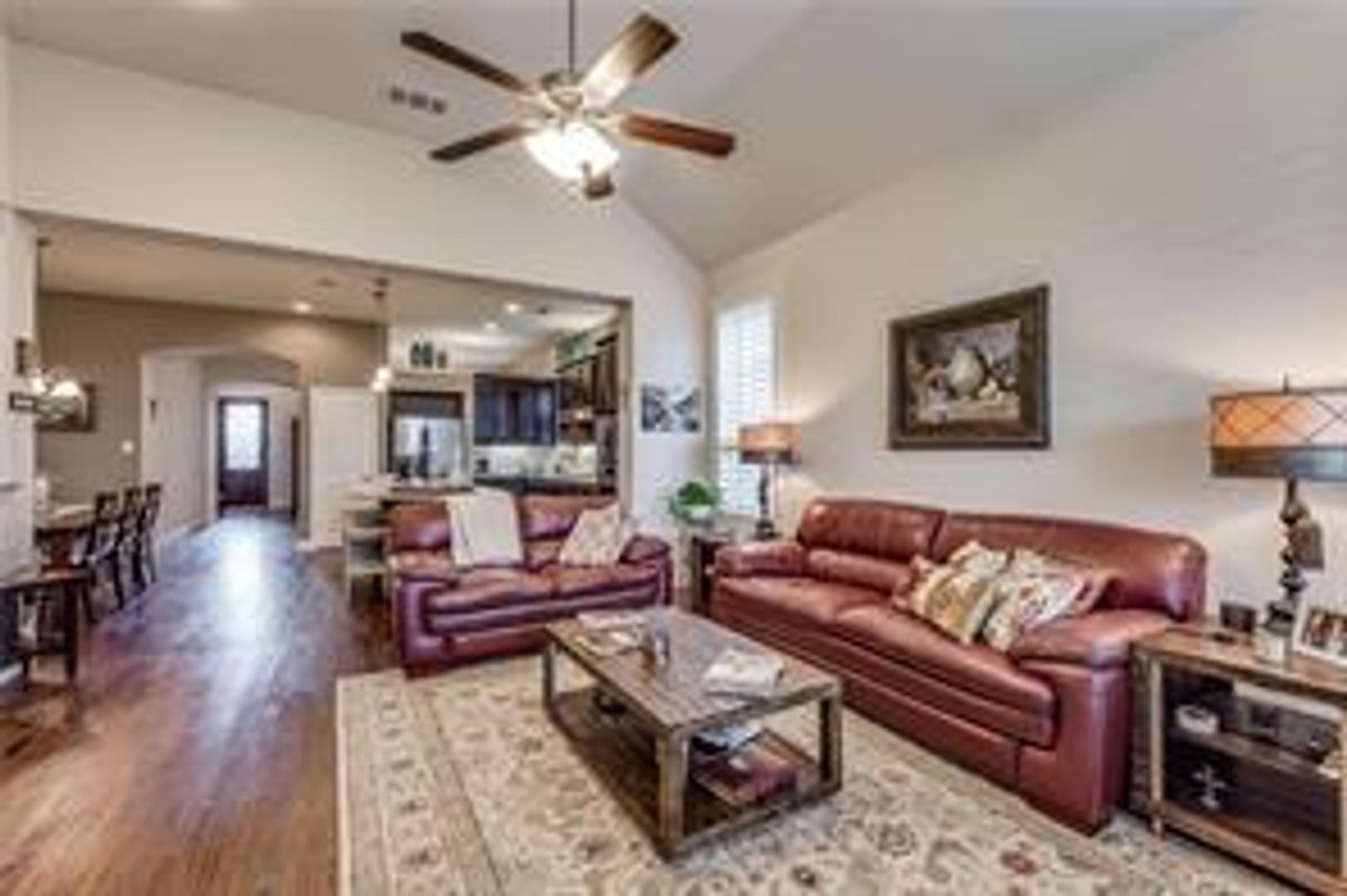 Another chance to own this warm and inviting Highland Home in the eco-friendly Harvest community. From lush landscaping and rich wood flooring to abundant natural light, every detail welcomes you in. The open floor plan offers seamless access to the backyard, while the kitchen features gleaming granite countertops and stainless steel appliances. Just before the spacious master suite, a cozy alcove awaits—ideal for reading or writing. Relax in the living room beside the charming stone fireplace, or step outside to enjoy the sunshine in your private backyard retreat. Home is available immediately.