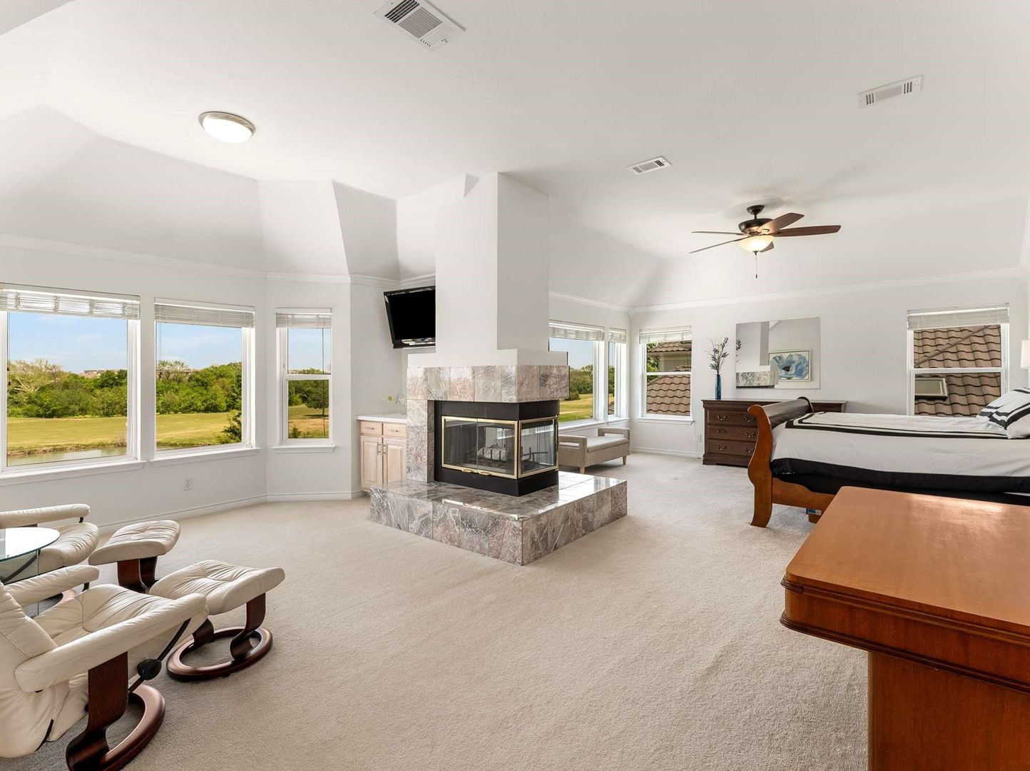 This elegant 4-bedroom, 4.5-bathroom residence at 7436 Stoney Point Drive offers a sophisticated blend of comfort and resort-style luxury in the heart of Plano. The grand interior features soaring ceilings and an abundance of natural light, anchored by an inviting living space with a classic fireplace perfect for cool Texas evenings. Each spacious bedroom serves as a private retreat with its own dedicated ensuite bath, while the primary suite offers a spa-like experience and direct views of the manicured grounds. Outside, the property transforms into a private oasis, featuring a sparkling gunite pool (2 HVAC systems, Google nest included) and a tranquil patio area designed for seamless indoor-outdoor entertaining. Nestled on a premier lot with stunning views of the surrounding golf course and ponds, this home provides a rare opportunity for peaceful, upscale living within the highly coveted Plano ISD.