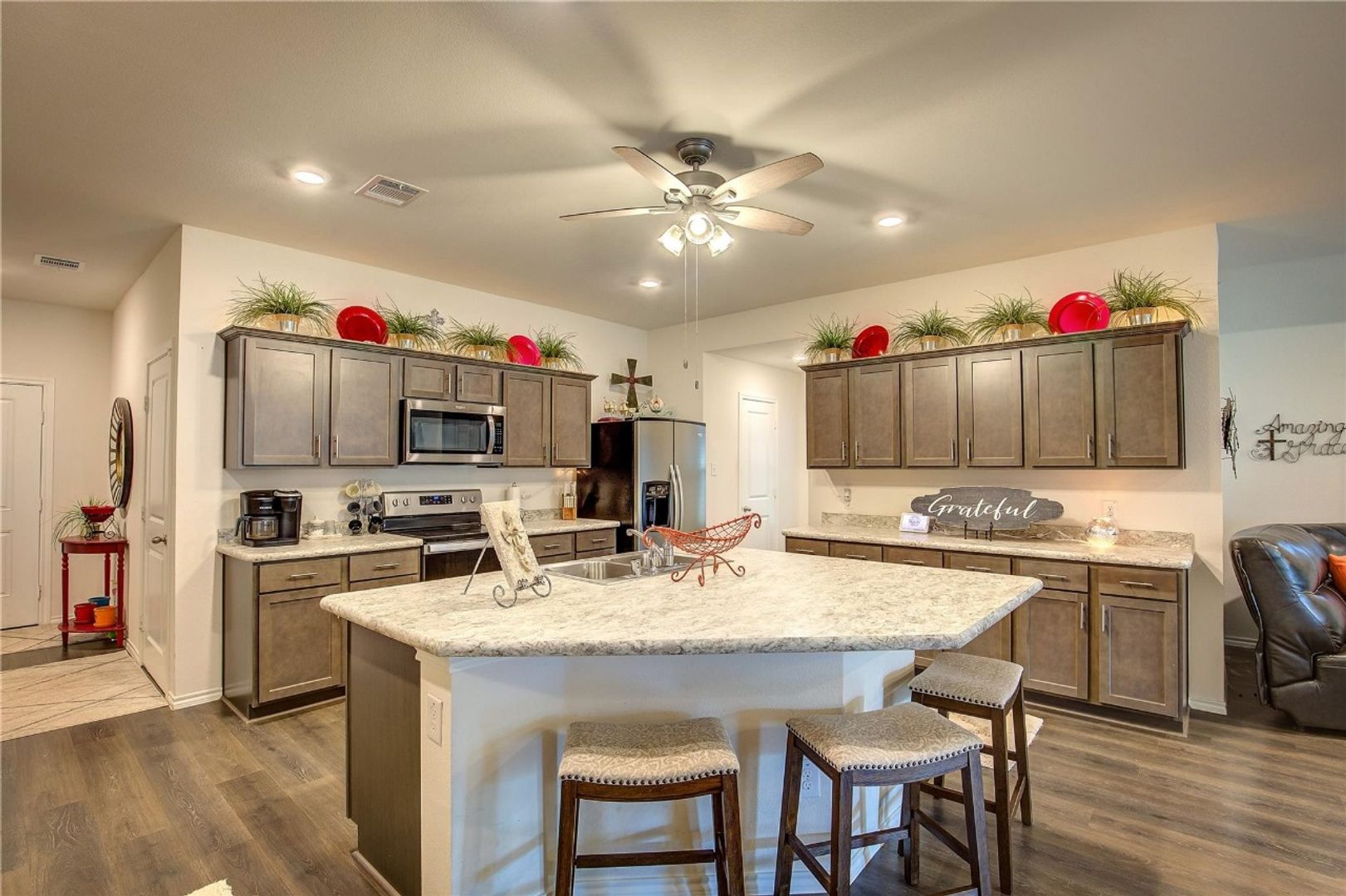 Step into the ultimate blend of comfort and style with this remarkable 4-bedroom, 2-bathroom home. Its open-concept design seamlessly connects the kitchen, living, and dining areas, creating a welcoming and spacious environment perfect for both everyday living and entertaining. The kitchen boasts a large island perfect for meal prep and causal dining. With the open concept design, natural light floods throughout the home. Outside, you'll find a covered back patio, providing a tranquil space to relax, unwind, or Information Deemed Reliable, but not Guaranteed. host outdoor gatherings, rain or shine. Don't miss the opportunity to make this house your home and enjoy all the wonderful features it has to offer. BE SURE TO CHECK OUT THE 3D MODEL AND FLOOR PLAN!