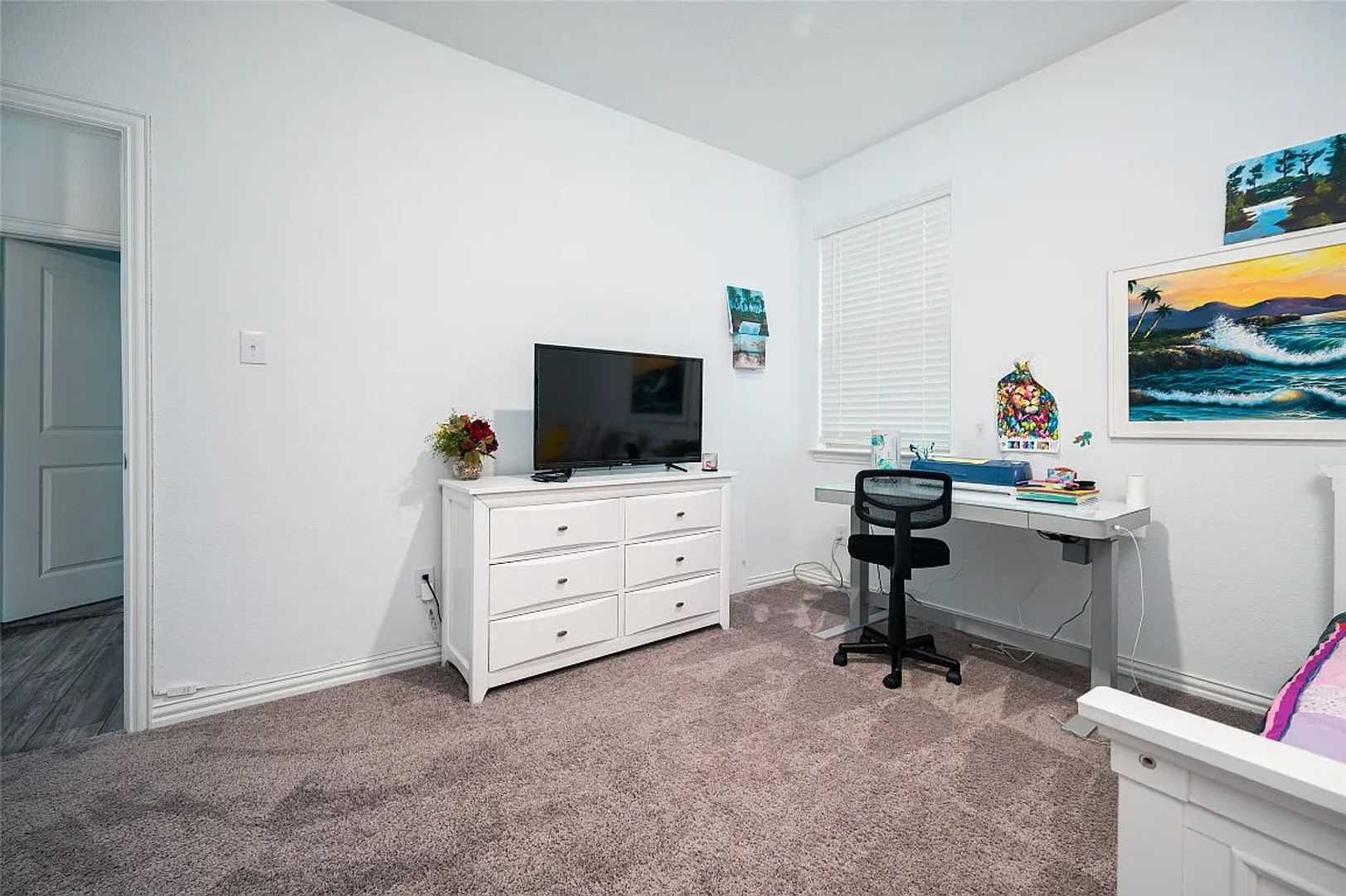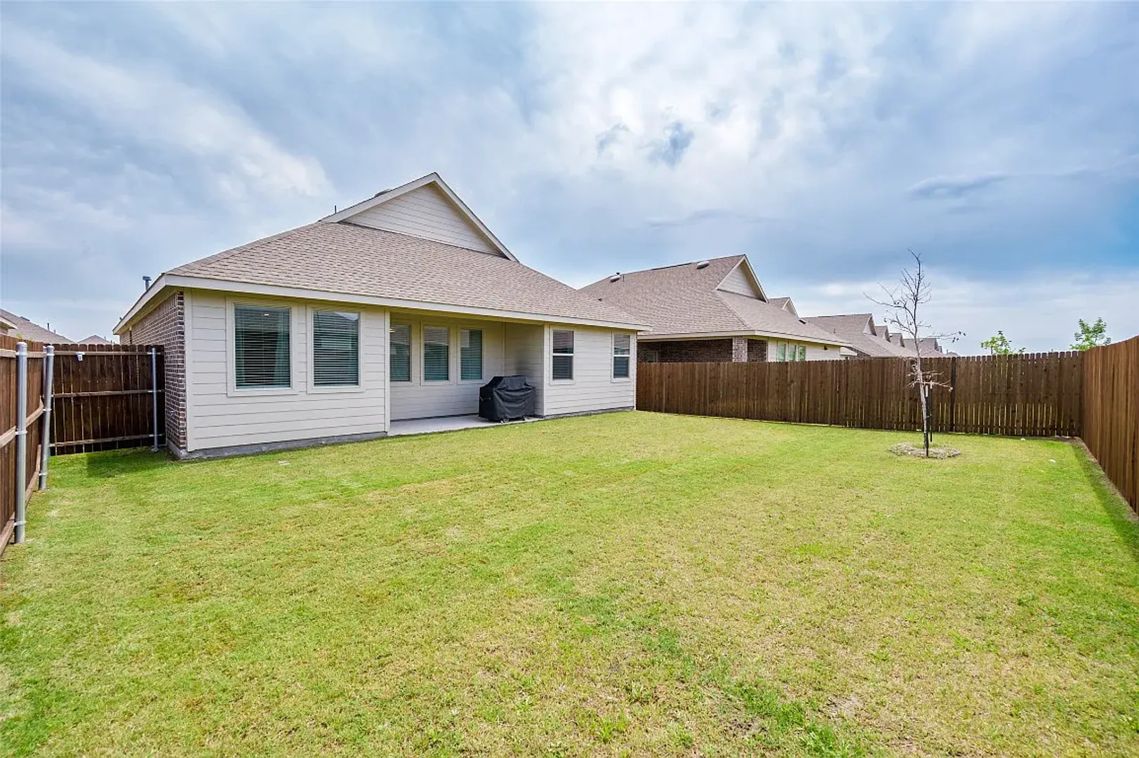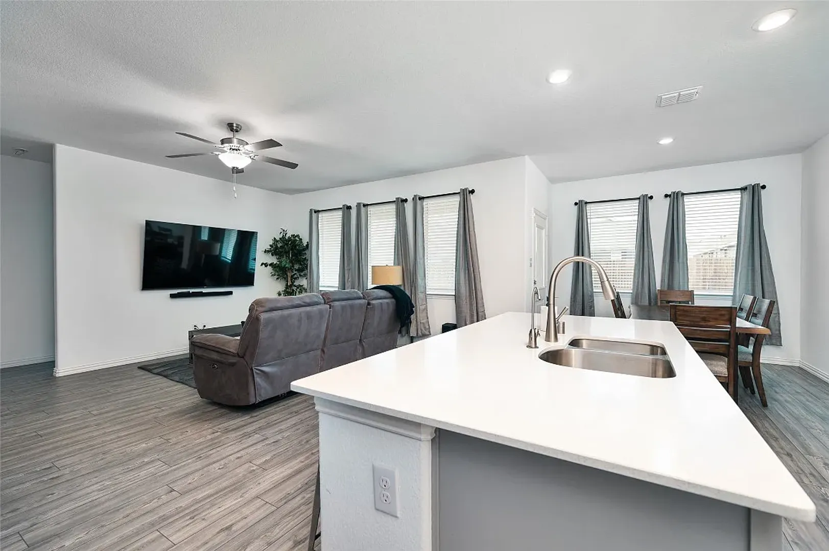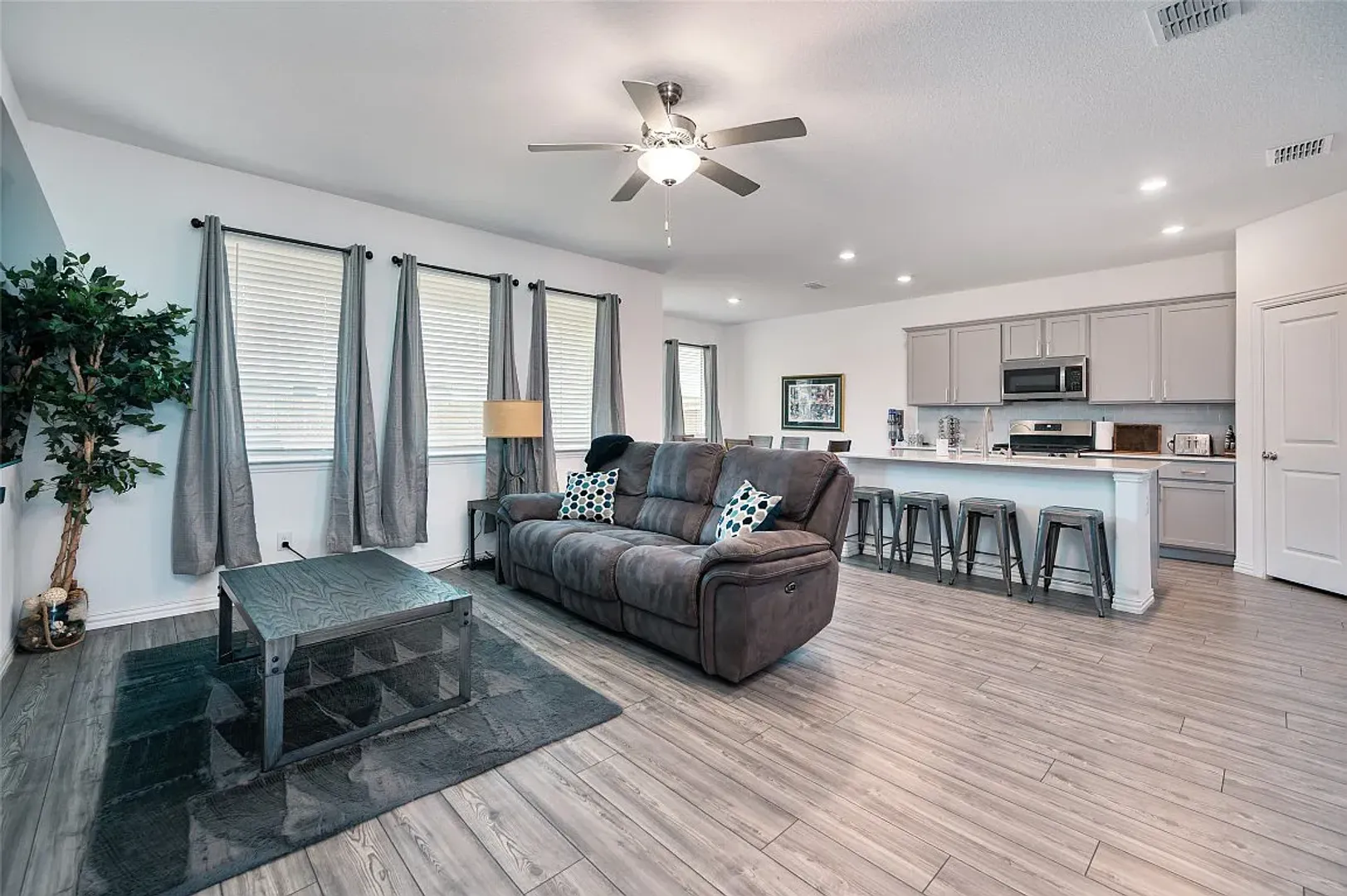 Step into this amazing home featuring a thoughtfully designed floor plan with four spacious bedrooms and two full bathrooms, perfect for comfortable living. The home welcomes you with an open layout that flows beautifully into the main living areas, highlighted by durable wood-look luxury vinyl flooring that adds both style and practicality. At the heart of the home is a stunning island kitchen complete with elegant quartz countertops, offering ample space for cooking, entertaining, and everyday gatherings. Each bedroom is generously sized and includes walk-in closets, providing plenty of storage for all your needs. The owner’s suite serves as a private retreat, featuring double sinks with quartz countertops, an oversized shower, and a convenient linen closet for added functionality. Additional features such as a sprinkler system and a covered patio enhance both convenience and outdoor enjoyment, making this home ideal for relaxation and entertaining. Located in the highly desirable Woodcreek neighborhood, residents enjoy access to an impressive range of amenities including two pools, a spray park, multiple playgrounds, scenic walking trails, two fitness centers, and a dedicated dog park. This home truly combines comfort, style, and community living at its best.