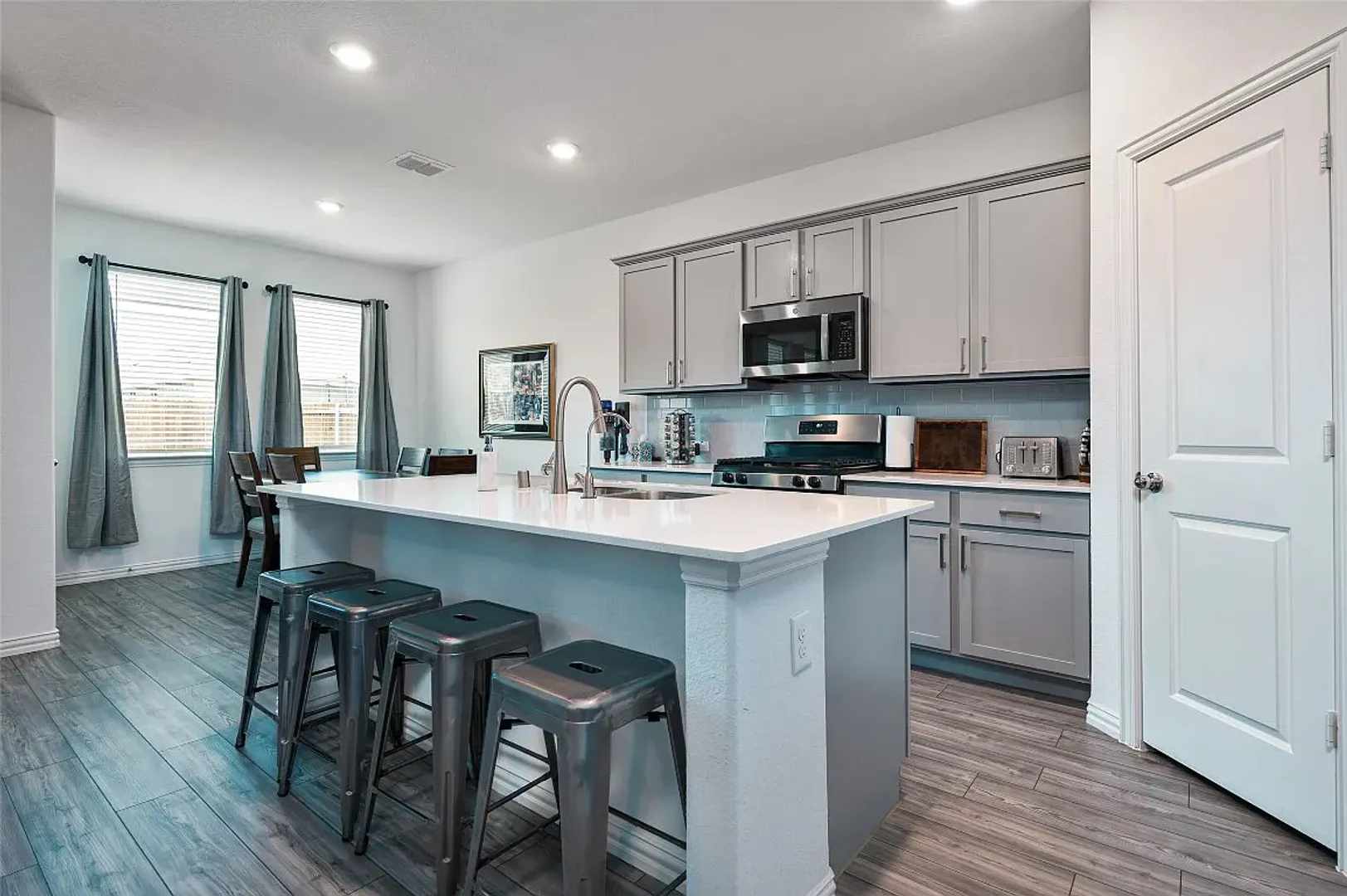 Stylish 4-bedroom home with quartz kitchen, luxury flooring, covered patio, and resort-style amenities in Woodcreek!